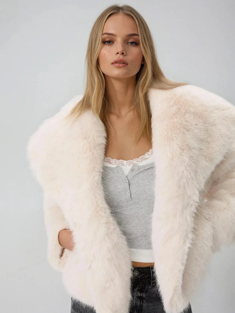 Luxe Pluche Lange Mantel – Verfijnde Oversized Pasvorm