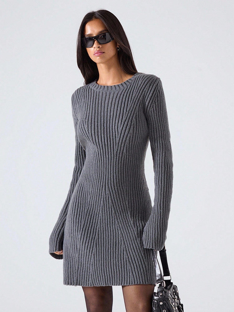 Geribbelde sweaterjurk — regular fit, licht rekbaar | Vanista