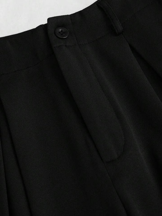 Elegante Zwarte Pantalon – Hoge Taille & Plooien | Vanista